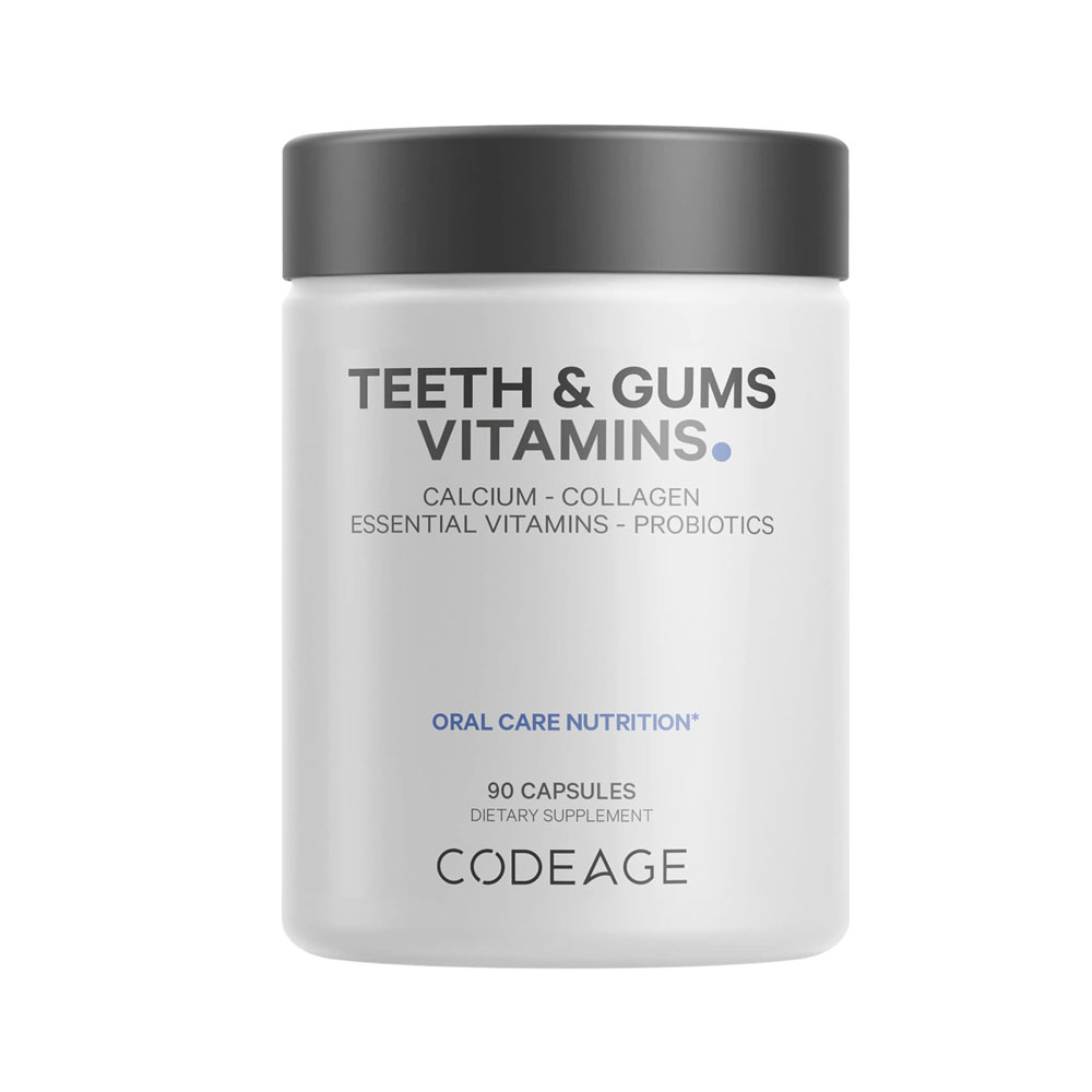 • Collagen for Teeth, Zinc, and Phosphorus: Codeage Teeth & Gums vitamins also offers collagen. Collagen can generally be found in the connective tissues in our mouth. These vitamins for teeth & gums also provide essential minerals, including phosphorus, zinc, and potassium. When combined with other elements, phosphorus may also help support teeth remineralization. Zinc may help support tooth enamel, play a role in the occurrence of bad breath, and offer healing support.*