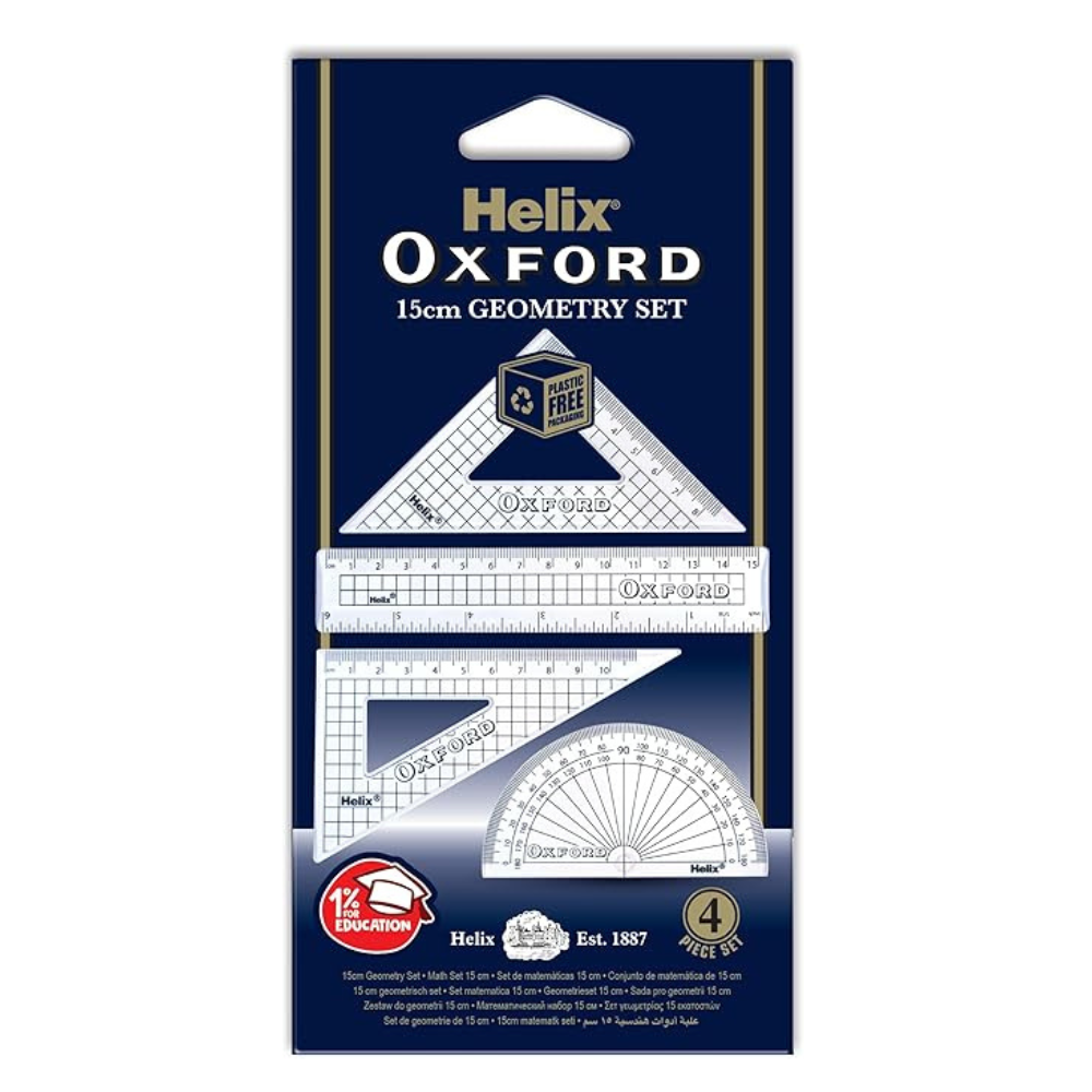 - Geometry set contains 15cm rule, 180degree protractor, 45 & 60 degree set squares.