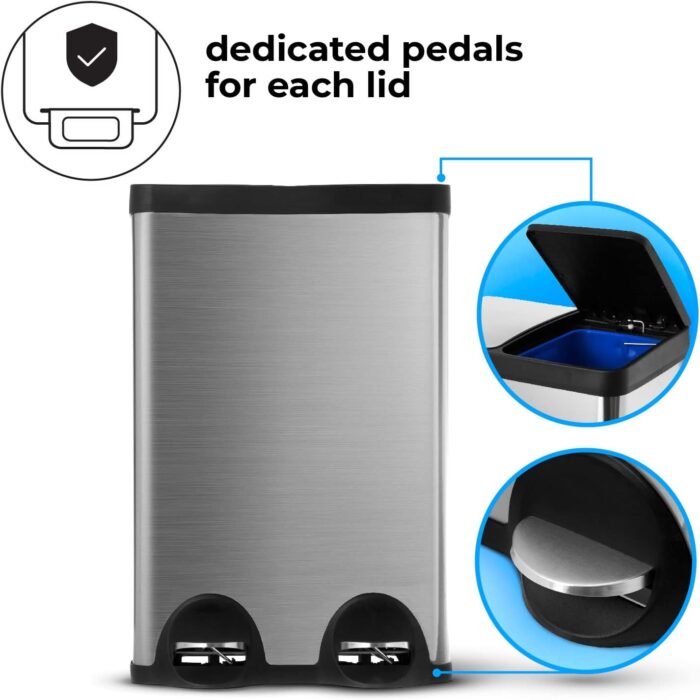 • Protects Your Flooring – The rubber feet pads on the bottom of the trash can will help prevent scuffs and scratches to your floor