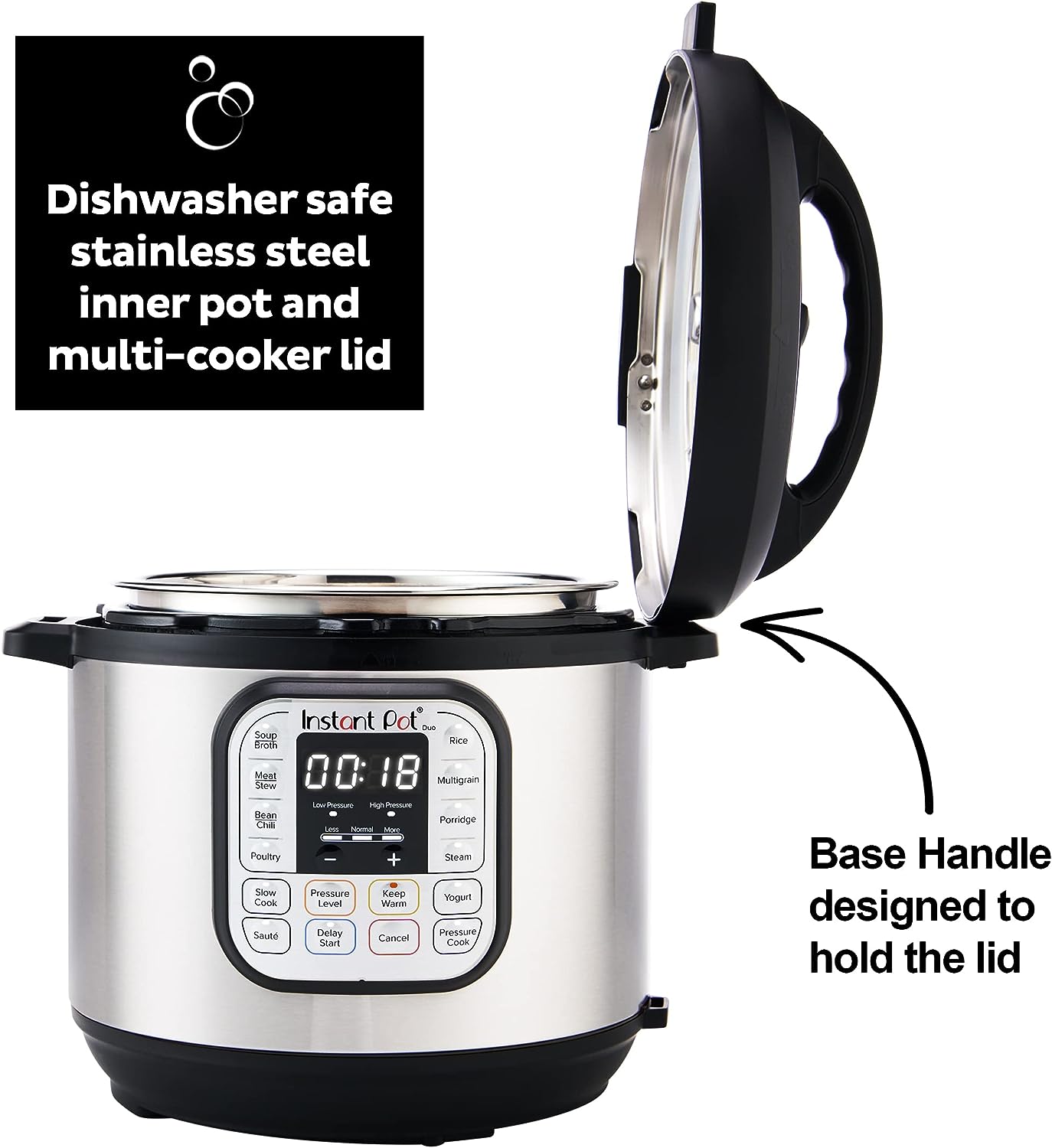 - QUICK AND EASY CLEAN UP: Finger-print resistant, stainless-steel sides and dishwasher-safe lid, inner pot, and accessories.