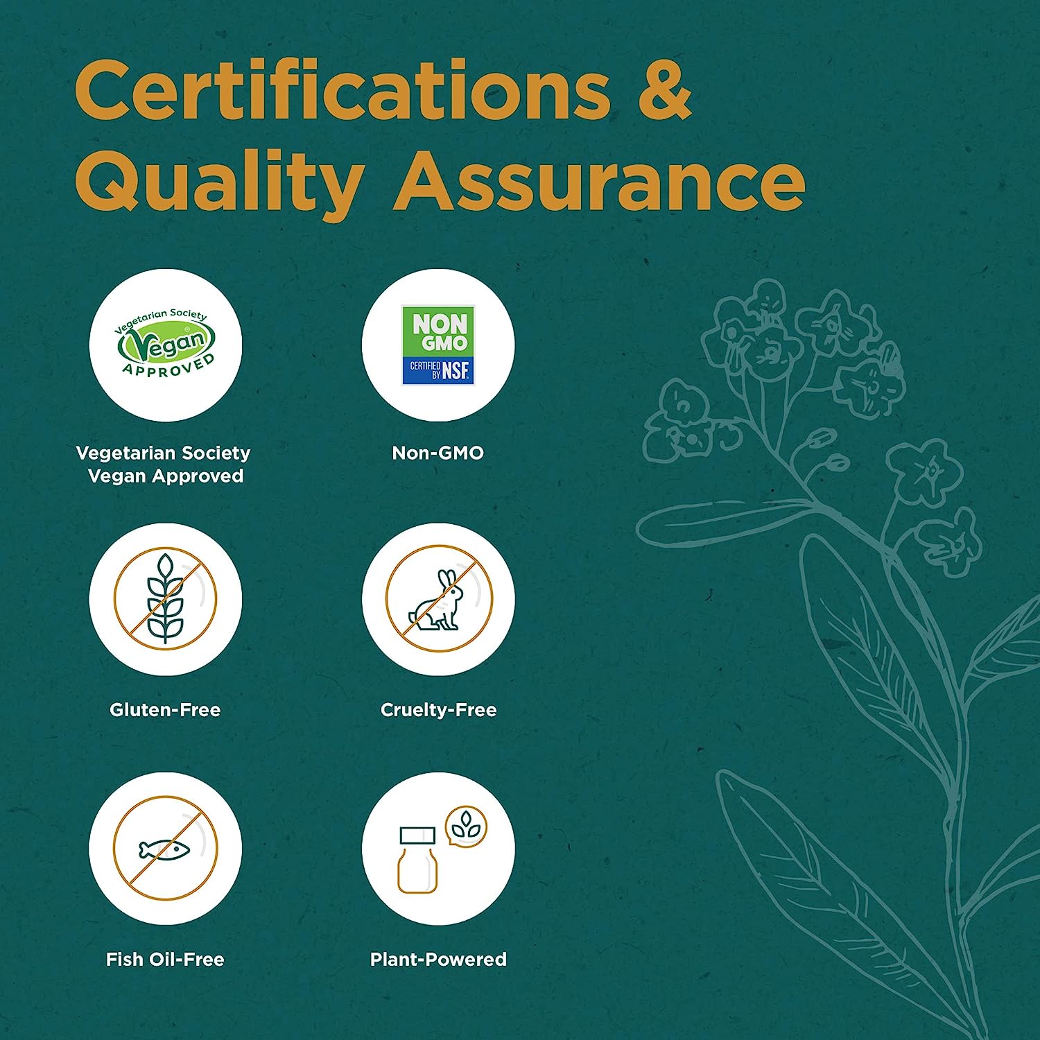 • Vegan, Non-GMO Fish Oil Alternative: Non-GMO, fish-free supplement made with algae oil to support a healthy heart, brain, and immune system. The SQF Quality Shield certifies that our manufacturing process meets rigorous quality code standards