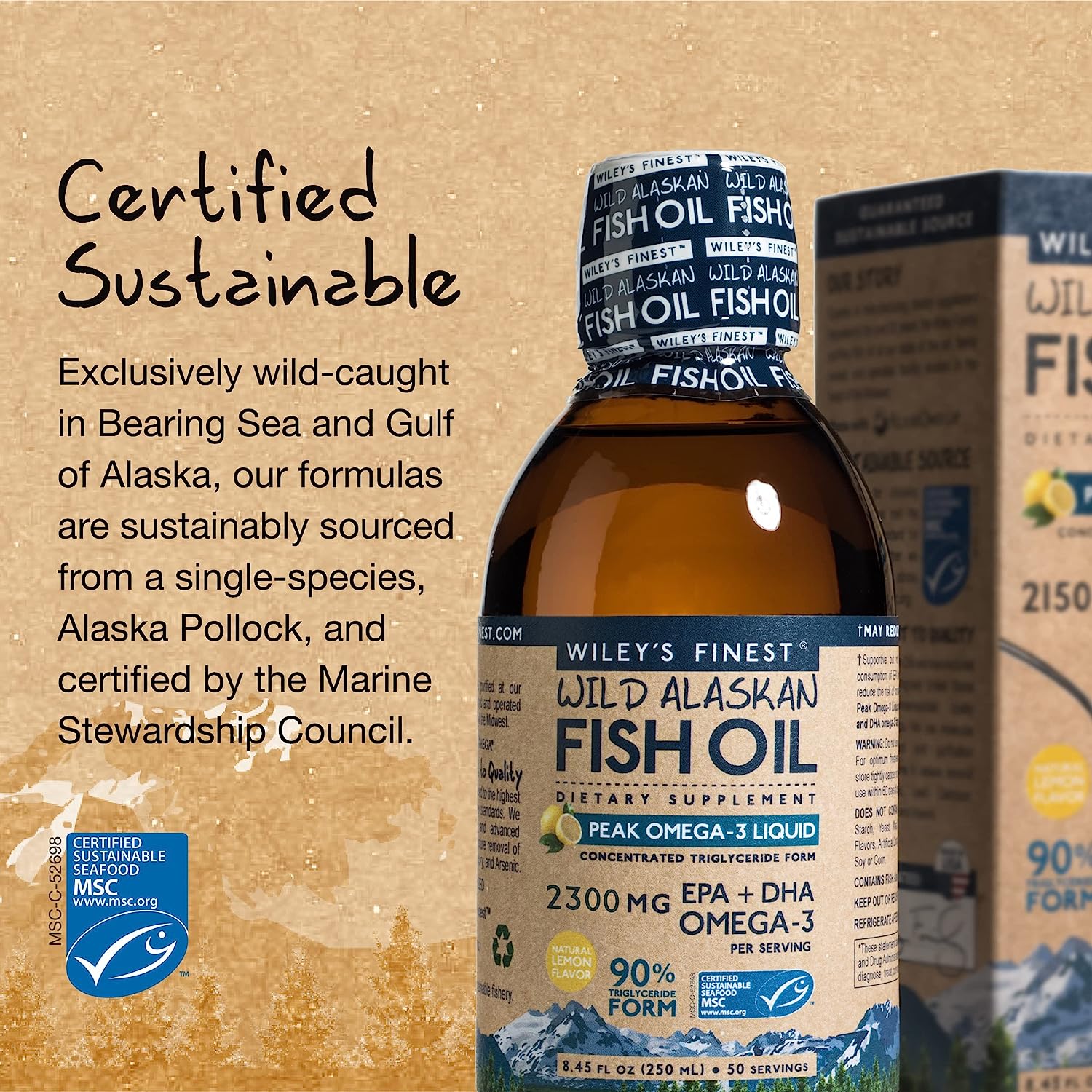 Wiley’s Finest Wild Alaskan Fish Oil Peak Omega-3 Liquid- 8.45 Oz