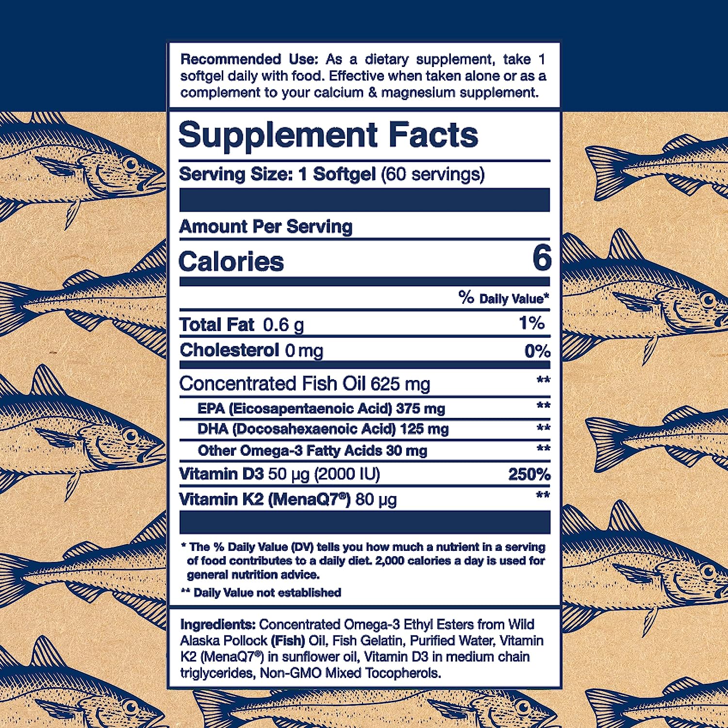 - Supports Bone Health: Vitamins K2 and D3 work together with omega-3s to support bone health and calcium retention for bone development