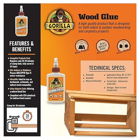 • Complete projects fast: Our wood glue only requires 20-30 minutes of clamp time and is fully cured in 24 hours